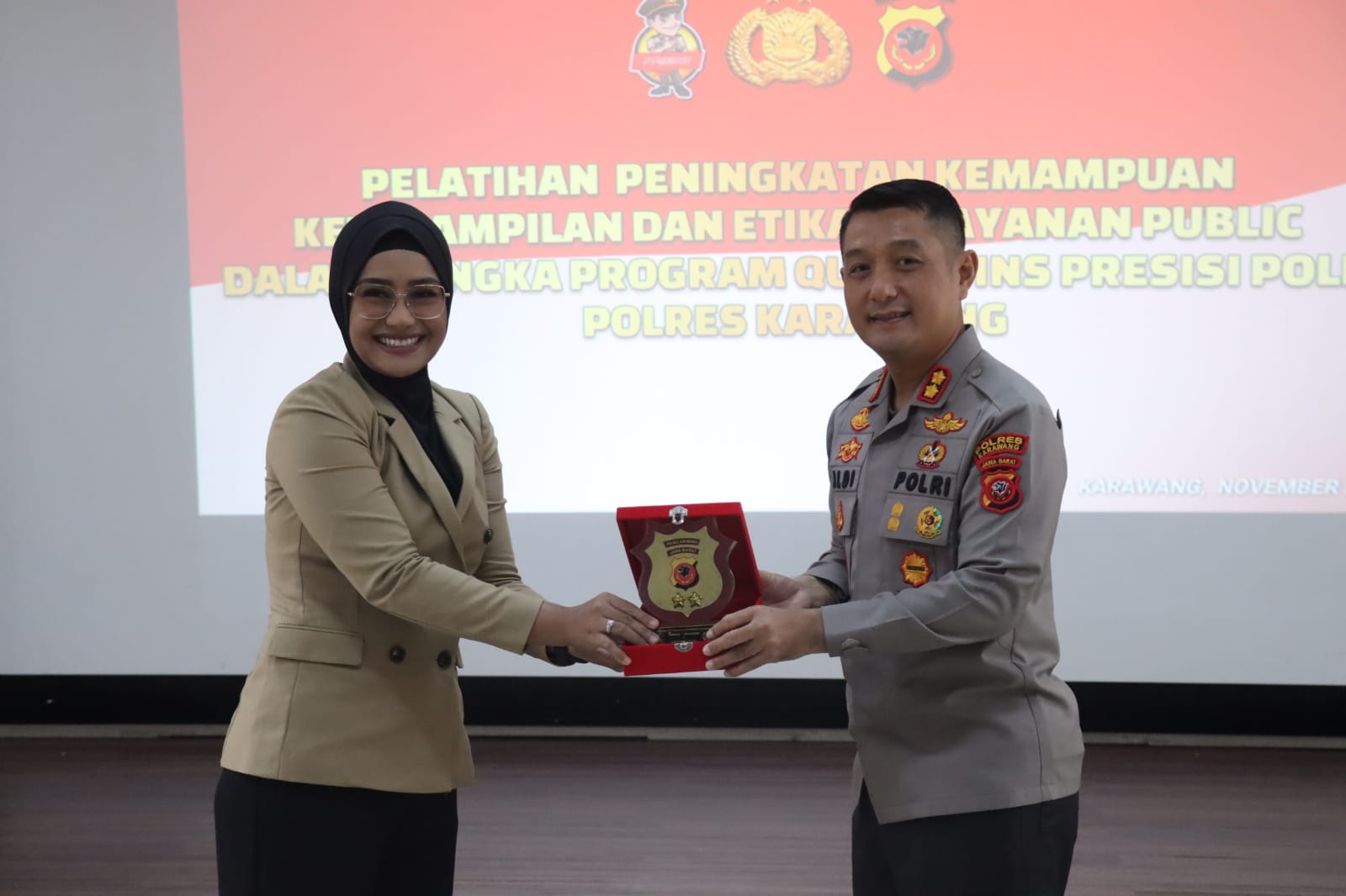 Dalam kegiatan pelatihan etika pelayanan publik, Kapolres mendatangkan Ibu Raden Yunita Prima, S.Sos MCGMCOM sebagai narasumber . Beliau merupakan lulusan dari Universitas Indonesia dan melanjutkan pendidikan beasiswa dari Menkeu di University Of Melbourn sebagai Mahasiswa terbaik. Dan saat ini menjabat sebagai dosen humas Fikom Unpad dan juga pernah menjadi staf ahli kemendukbud ristek untuk program sekolah penggerak. Kemudian beliau juga pernah menjadi Tv Jurnalis Tv One, Antv dan TVRI dan juga menjadi Public Relation Executivedi Pondok Indah Grup.