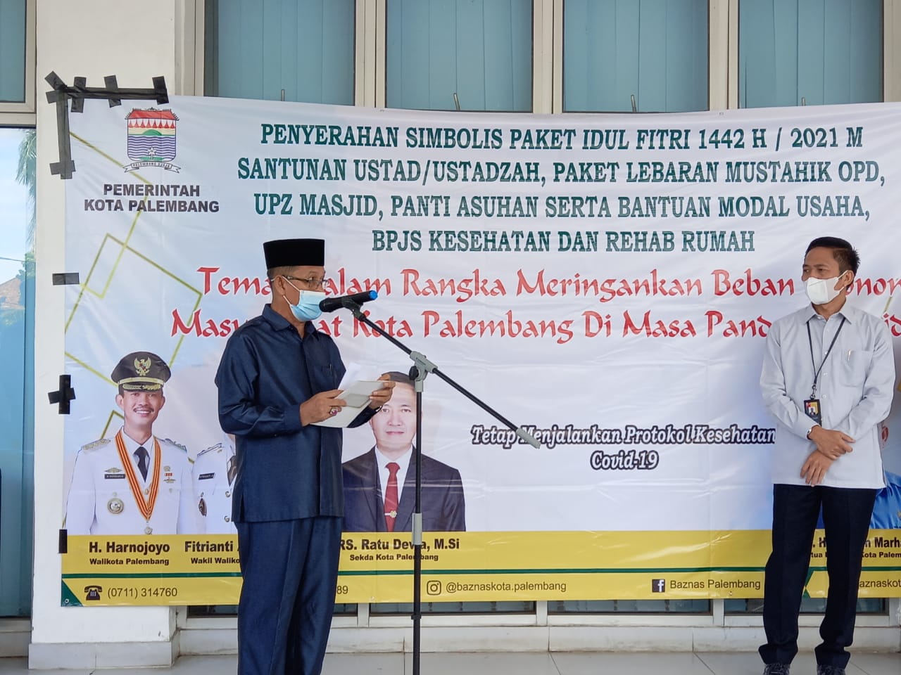 sinerginkri.com | PALEMBANG – Penyerahan secara simbolis paket Idul Fitri 1442 H,santunan ustad/ ustadzah,mustahik OPD,UPZ masjid,panti asuhan serta bantuan modal usaha ,BPJS kesehatan dan Rehab rumah berlangsung di halaman Kantor Walikota ,Jalan Merdeka Palembang,(10/05/2021).