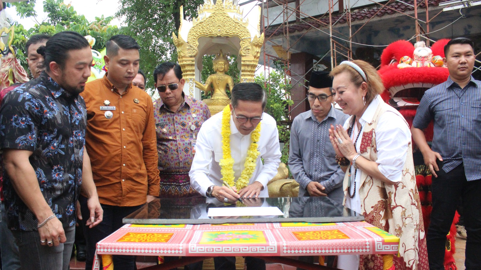 Peletakan batu pertama pembangunan mushola serta rumah singgah di vihara yang terletak di Kelurahan Bukit Sangkal, Kecamatan Kalidoni itu dilakukan langsung oleh Pj Walikota Palembang Ratu Dewa, Jumat (23/2/2024) sore.