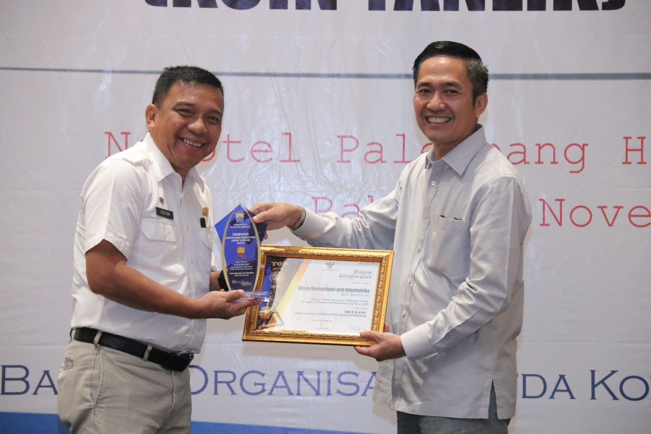 Palembang, sinerginkri.com – Pemerintah kota Palembang melalui Organisasi dan Tata Laksana (Ortala) bagian Sekertariat kota Palembang memberikan Penyerahan Piala Pemenang Kompetisi Inovasi Pelayanan Publik (KOINYANLIK) di Lingkungan Pemerintah Kota Palembang Tahun 2022 kepada 10 terbaik Organisasi terkait.
