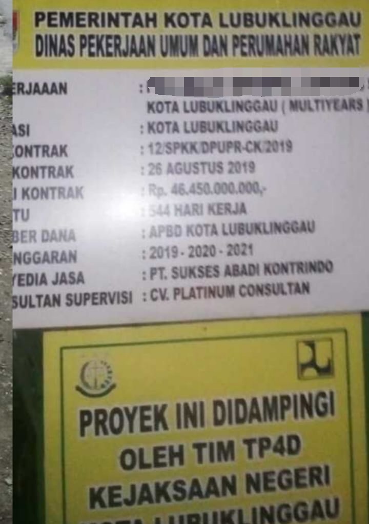 Foto : Papan Ptoyek Drainase Multi years Kota Lubuk Linggau