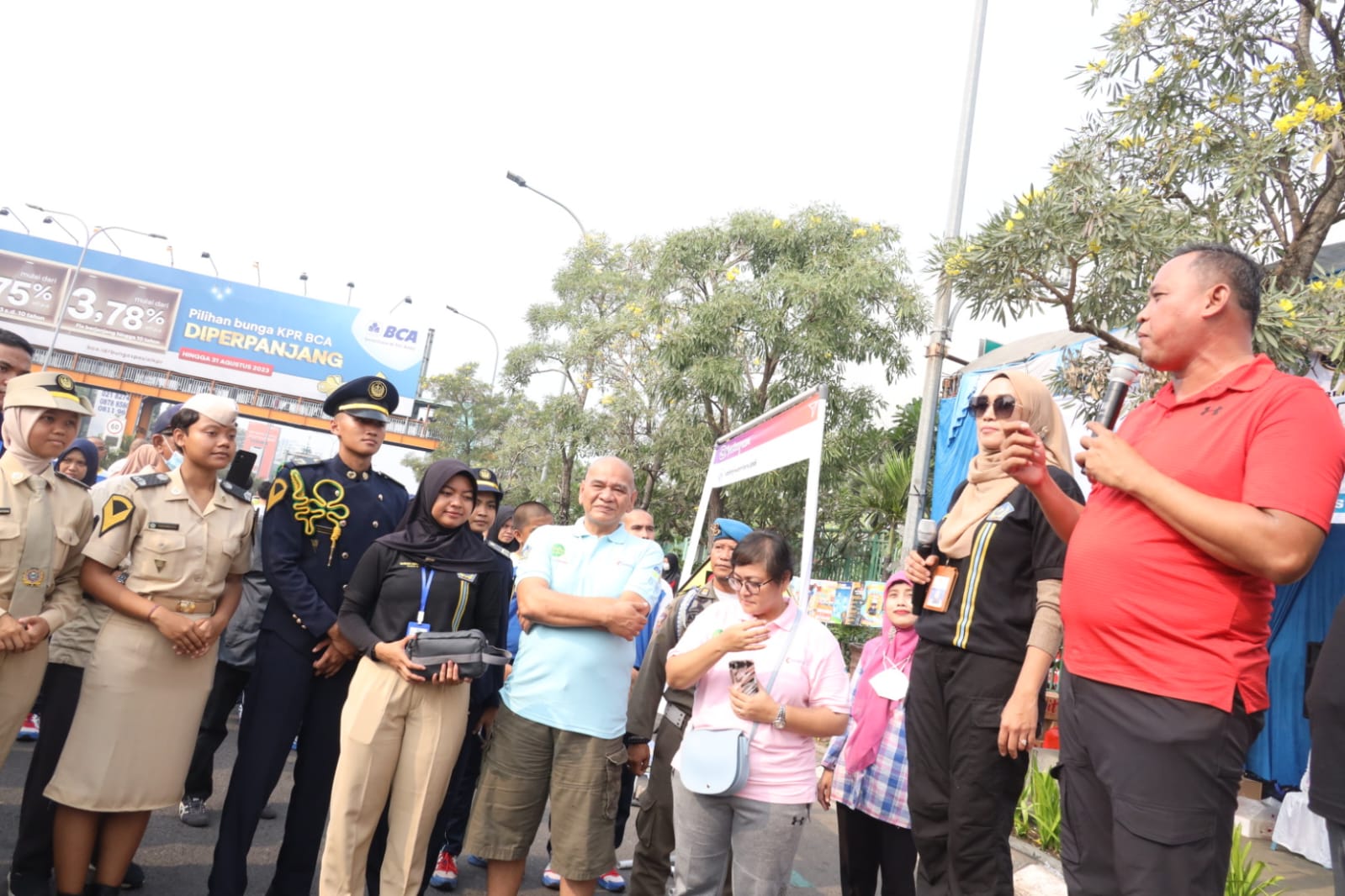 Kota Bekasi,SinergiNKRI.Com –Pada area hari bebas kendaraan Kota Bekasi atau Car Free Day sepanjang Jalan Ahmad Yani hari ini, Sekolah Tinggi Transportasi Darat melakukan sosialisasi kepada warga Kota Bekasi untuk menerapkan keselamatan para pengendara bermotor.