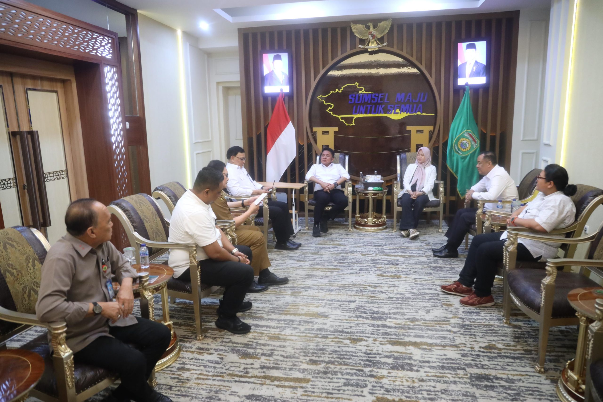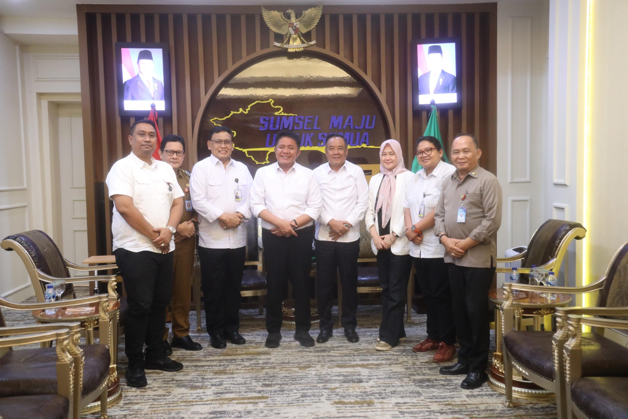Gubernur Sumsel H. Herman Deru menerima kunjungan Staf Presiden RI di Ruang Tamu Gubernur, Senin (14/7/2025)
