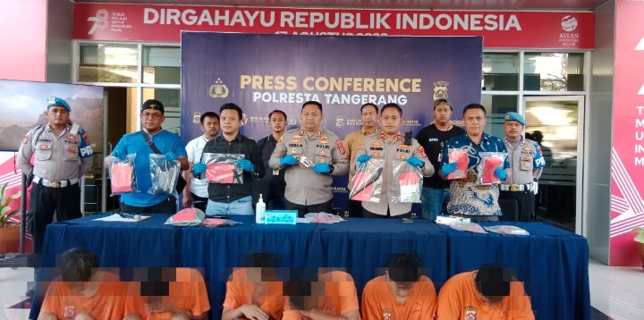 “ke-7 pelaku berinisial N asal Lampung Utara dan J, warga Kecamatan Baradatu, Lampung. Dan R G, A, A, A warga OKU Selatan (Sumatera Selatan),” ungkap Kapolresta Tangerang, Kombes Pol Sigit Dany Setiyono, Jumat, (29/09/2023).