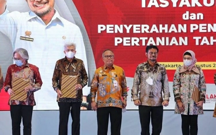 Penghargaan diserahkan oleh Menteri Pertanian RI Prof. Dr. Syahrul Yasin Limpo SH. M.Si. MH kepada Gubernur Sumsel H. Herman Deru yang diwakili oleh Wakil Gubernur Sumsel H. Mawardi Yahya dalam acara Tasyakuran dan Penyerahan Penghargaan Pertanian 2022 di Lapangan Upacara, Kementerian Pertanian RI, Jakarta. (14/8/2022).