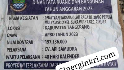 Tangerang, Sinergikri.com | Pembangunan penataan sarana Olahraga yang berlokasi di RT28/09 Perum Mulya Asri II,…