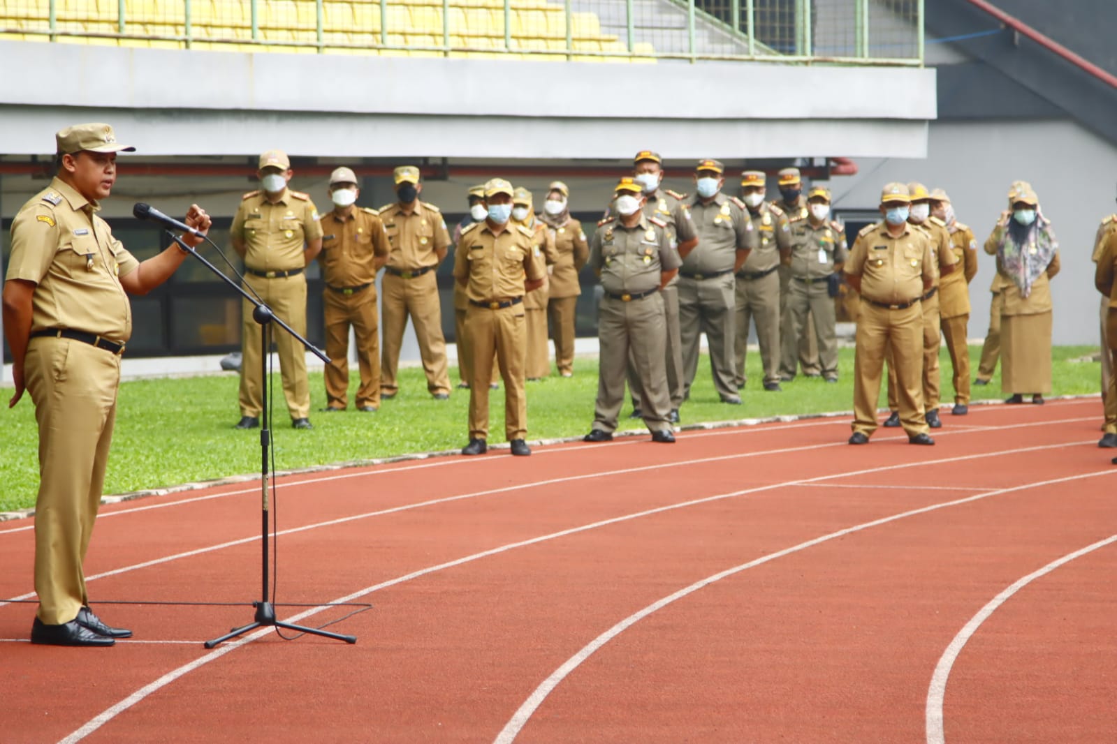 Tri Adhianto memimpin apel perdana sebagai Pelaksana Tugas Wali Kota Bekasi